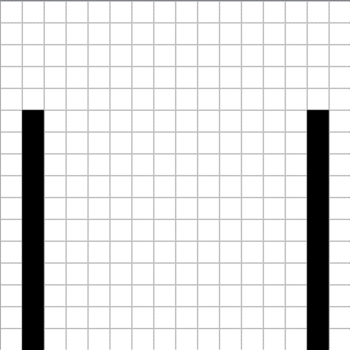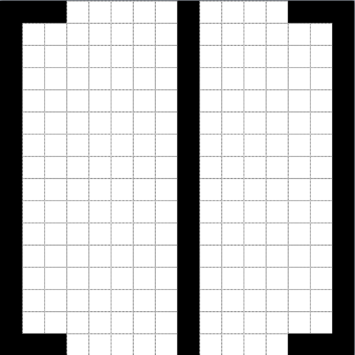 Now, to draw the seam between the doors, make a line starting at the top row and eighth column, running to the bottom of the image.