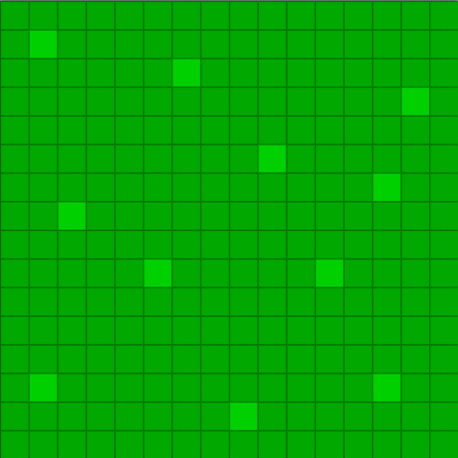 Just like in all posts for this series, I’ll be starting from making a 16×16 image. However, unlike the others, let’s start with a filled image of green (#00A800) as a basis for a grass ground tile.