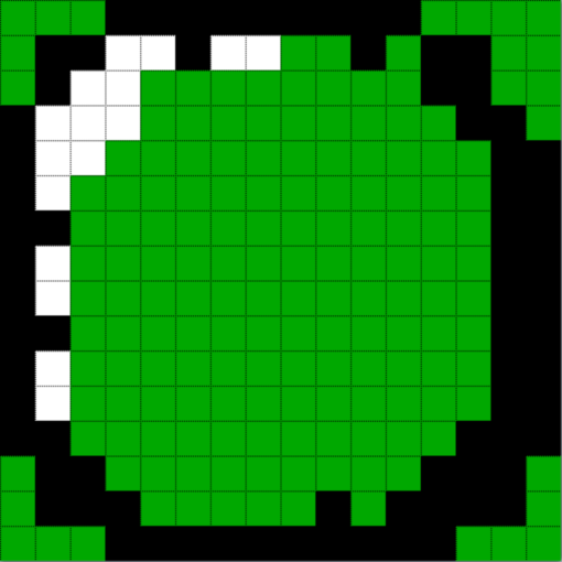 Starting from a new 16 x 16 image, we can fill it with green (#00A800).