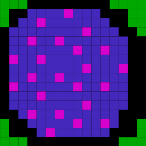 Of course, this new, larger bush is rather boring. By drawing over the white pixels and then adding a pattern inside the bush, we can change that.