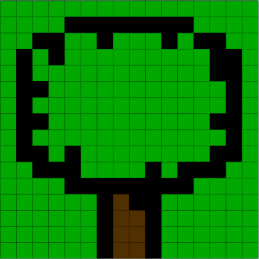 So, in order to make it more professional, we are going to add some “rough edges” to the tree by adding black pixels to its outline in random places. This way, the tree will look as if its branches grew into a more organic looking pattern.