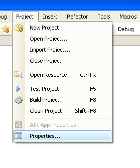 Now, to add the Flixel library to this project, we need to go back to the project’s properties.