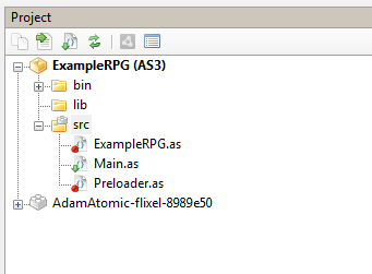 While they can, of course, have many more files, all Flixel projects have three primary classes: the loader (Preloader), the game (FlxGame), and at least one state (FlxState).