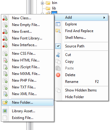 To start, let’s create a new folder by selecting the “src” folder, right-clicking and then choosing Add then “New Folder…”