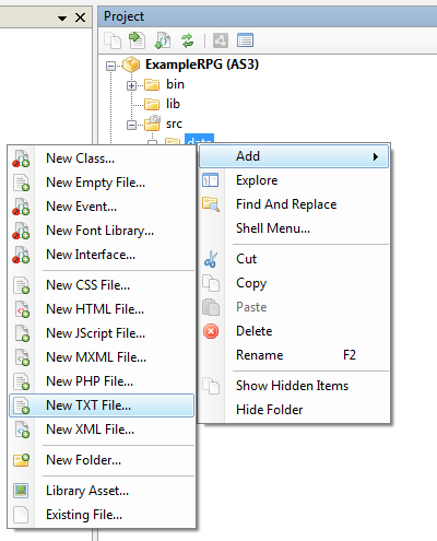 Selecting “data”, go to New and then “New TXT File…”