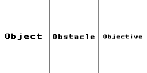 Depending on the perspective, the direction may be different, but the concept is still the same. From Super Hexagon to Robot Unicorn Attack, the idea is that the player will have a third of the screen to prepare (Object), another third to see the next action (Obstacle), and a final third to see where they are going after (Objective).