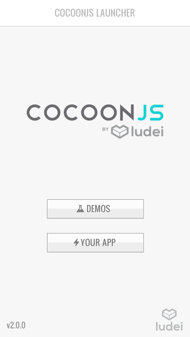 When opened, the CocoonJS App will give you the options of viewing the official demos or “YOUR APP.” (For development, you will want “YOUR APP.” However, it is often useful to look through the demos on a device and then visit the demo page to see the code for how each is done.)