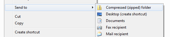 In newer versions of Windows, this can be done by right-clicking on the file, selecting “Send to” and clicking on “Compressed (zipped) folder” to create a new ZIP file.