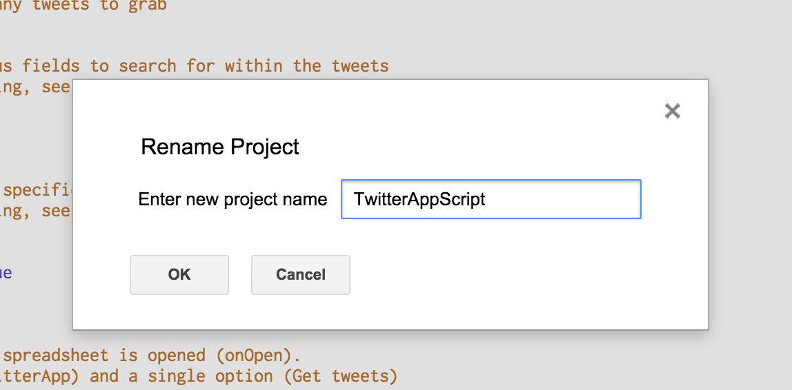 Name this project. (For this example, I’ve named it “TwitterAppScript.”)