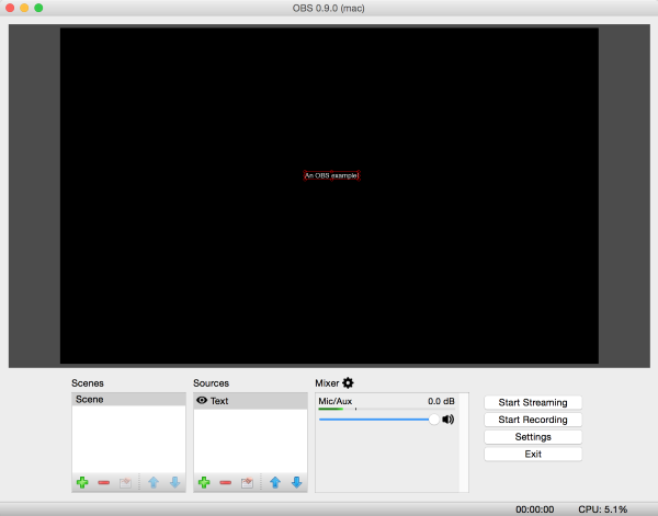 In either the Windows or Mac versions, click on “Start Streaming” to stream your configured sources on Twitch. While streaming, you can also click on “Start Recording” to produce a local copy of the same sources.