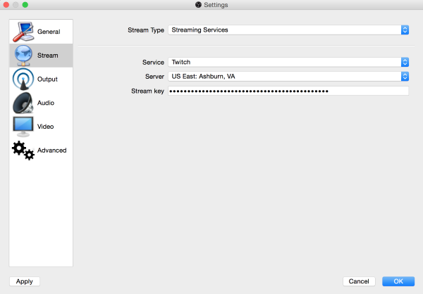 With the sources configured and stream key found, it is time to configure OBS for streaming using Twitch.