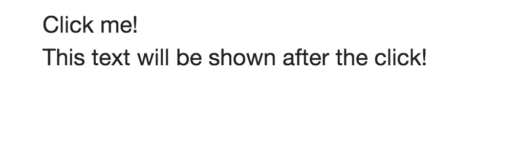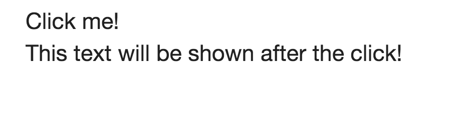 | <div class="hidden">This text will be shown after the click!</div> | |