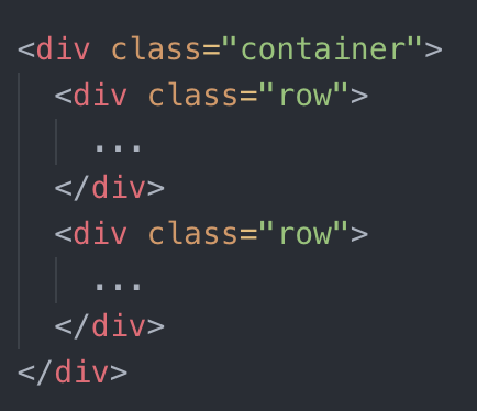 Rows go inside containers. They define the outer bounds of the content within them and help organize the overall layout. Like containers their class, the class attribute .row defines rows.
