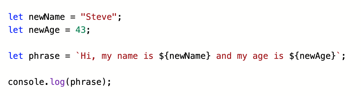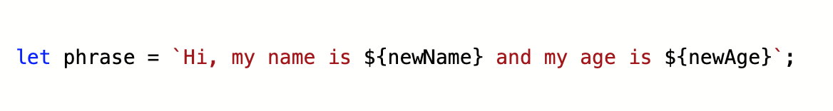 In older versions of JavaScript, complex series of operations were required to make a string mixed of both existing content and variables. All of these needed to be concatenated together through using the plus, +, sign between them.