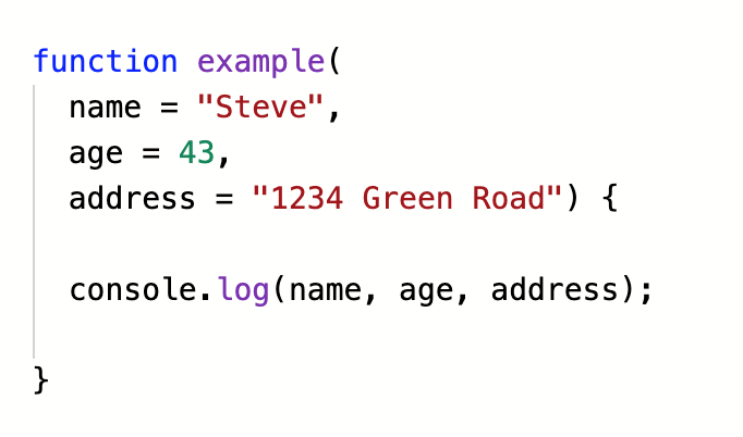 In previous versions of JavaScript, testing for parameter values required as many lines as parameters to a function. Any “default” values needed to be tested against those passed to a function.