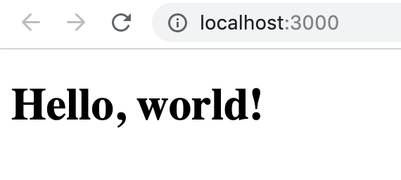 After a few seconds, a new tab or window will be opened in the default web browser. It will open to the web server started using the running React code. The results should be “Hello, world!”