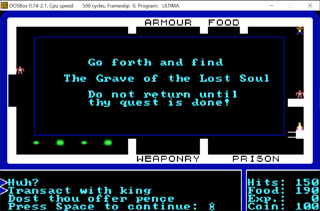 Garriott, R. (1988). Ultima V: Warriors of Destiny. Austin, Texas: Origin Systems.