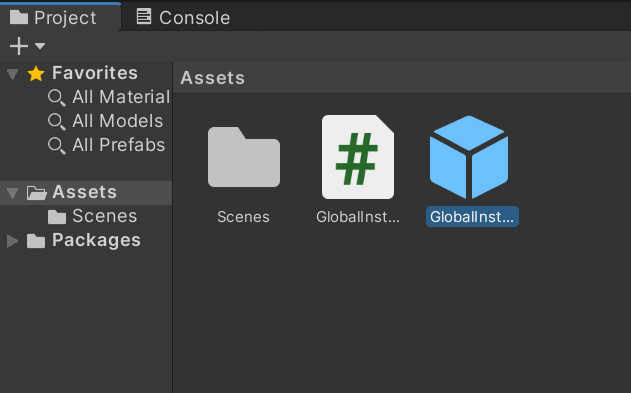 Open the created GlobalInstance.cs through double-clicking on it in the Project View.