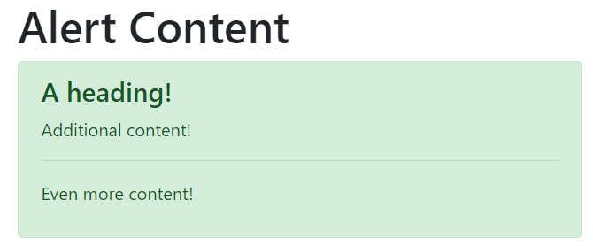 While the use of the class alert and then a prefixed color class changes elements into the Alert component, they can also use additional classes to build complex content areas.