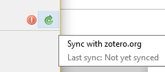 Inn the right-most corner above the right-most pane is the “Sync with zotero.org” button. When working an account on Zotero.org, collections and their items can be synced to the cloud storage Zotero provides for free.