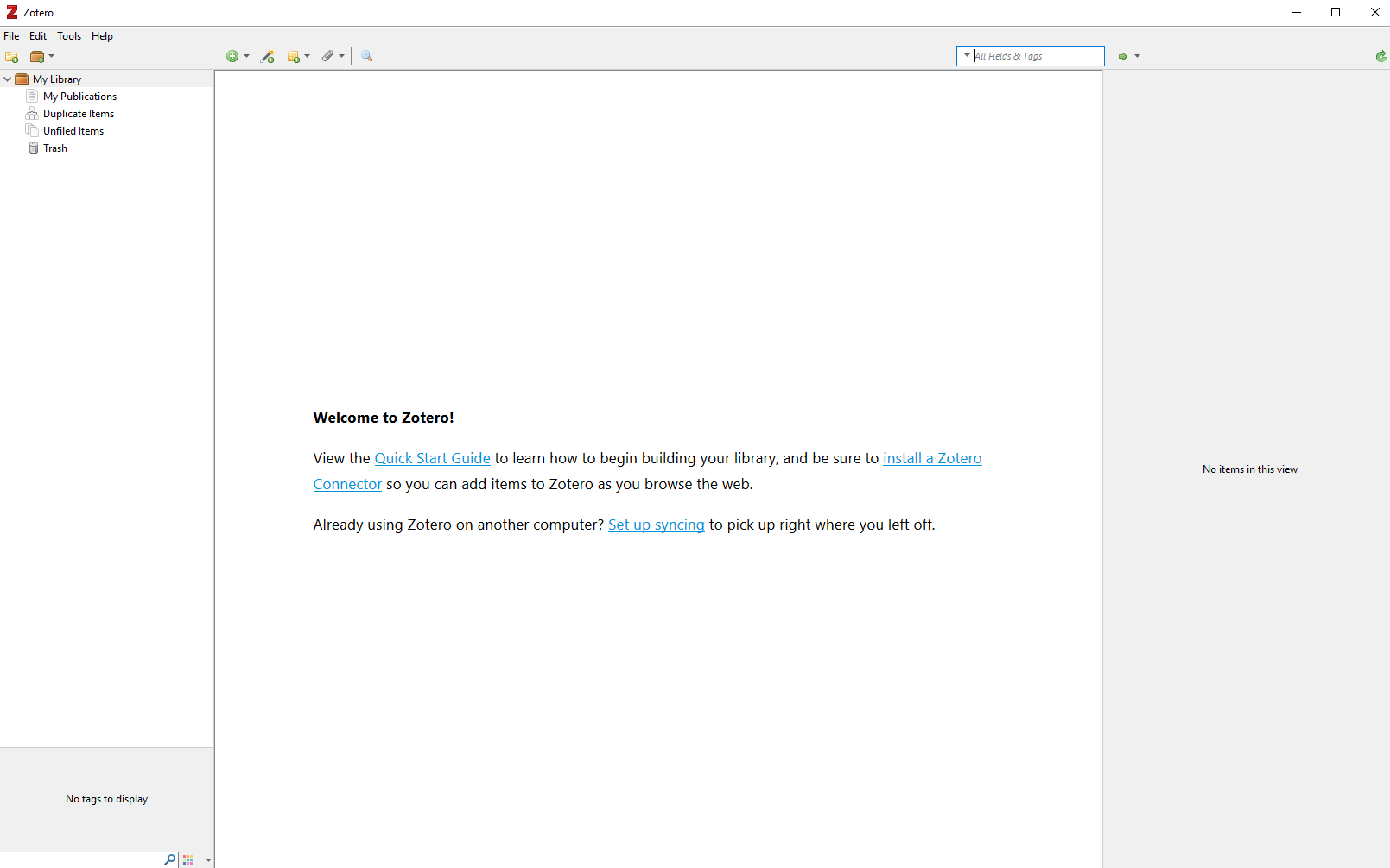 After downloading Zotero and following its default instructions for installing it, Zotero will then be ready for use.