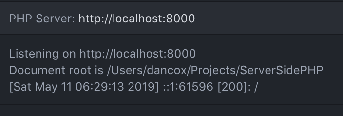 Once started, PHP Server will open a web browser for the current option (folder or file).