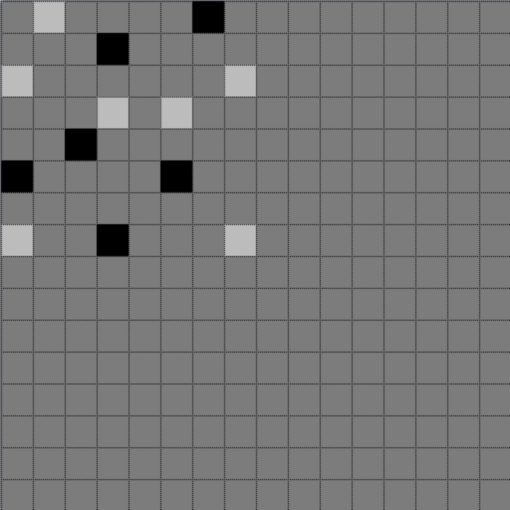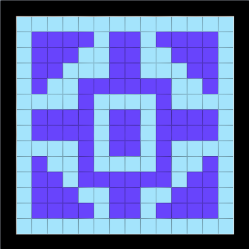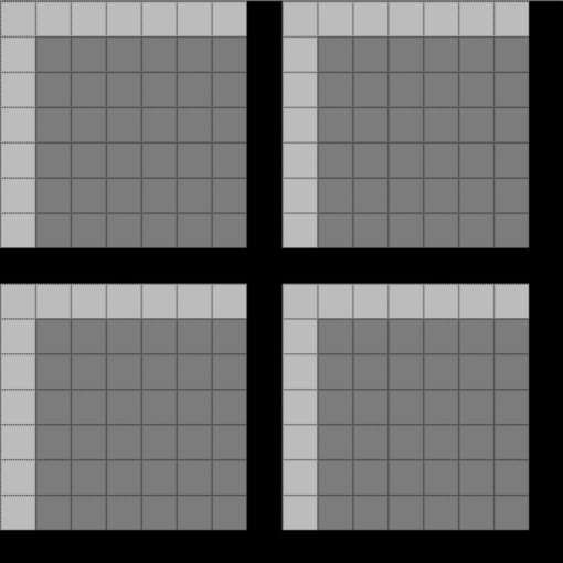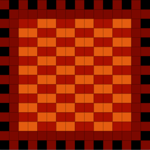 Now, we copy and paste the 8 x 8 pattern three times so that there are two rows of two instances each with a single row or column of black between them.