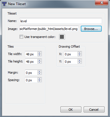 Click on “Browse..” and find the “level.png” file. Select the file, click “OK” and then, when back to the “New Tileset” window, click “OK” once more.