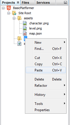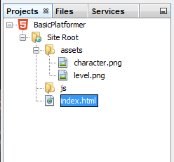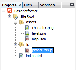 Regardless of the method used, the “level.png” and “character.png” files should now be in the “assets” folder under the Site Root within NetBeans.
