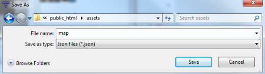 From the drop-down “Save as type” menu, pick “Json files (*.json)”.