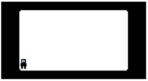 Now, using the second-to-last and the last tiles in the set, replace the tiles on the top and bottom edges, stopping each time at the previously created columns. The map should now look like a black square with and inner white rim. This will be the level for the platformer.