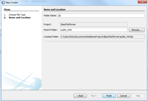 Name this new folder “js” (as it will hold the JavaScript files) and then click Finish.
